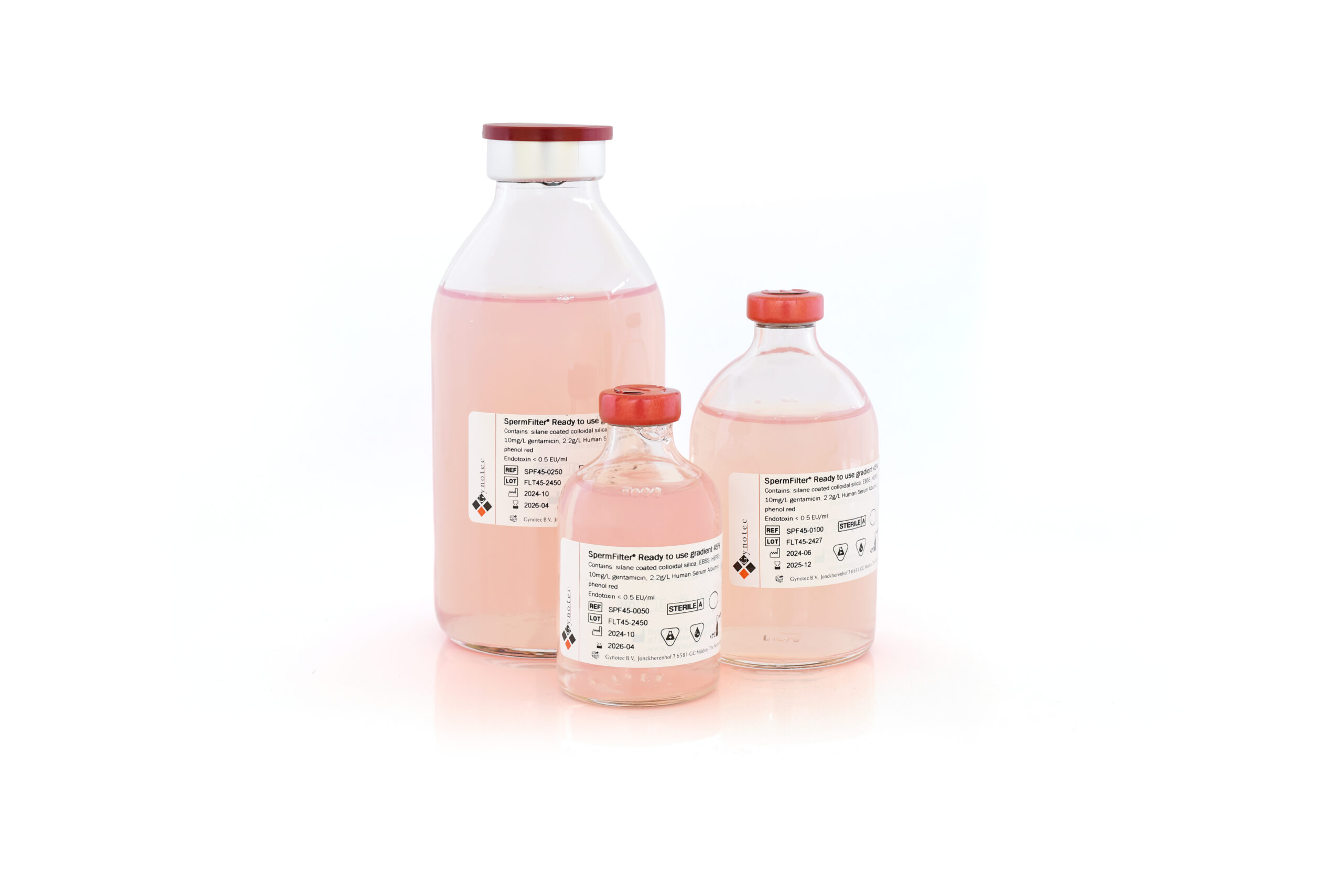 SpermFilter® Ready-to-use gradients (80% and 45%) are ready to use gradient systems for semen preparation. The SpermFilter® Ready-to-use system can be used for semen preparation for Intra Uterine Insemination (IUI), In Vitro Fertilization (IVF) and IntraCytoplasmatic Sperm Injection (ICSI).